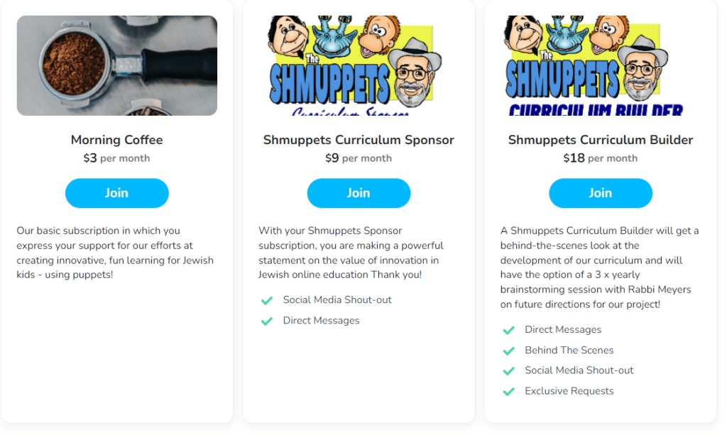 BECOME A MEMBER OF SHMUPPETS JEWISH EDUCATIONAL VIDEOS!